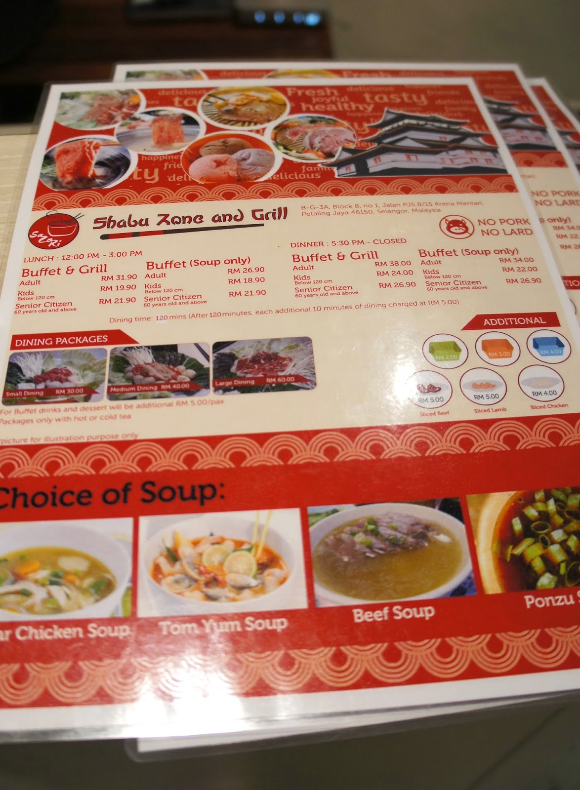 Menu For Shabu Zone In Houston, Tx.
